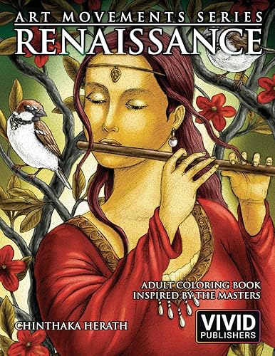 Get your FREE PDF Digital Edition when you purchase this book! You can download it at our website to print and color as many pages you want! Art Movements Series: Renaissance. This book includes 24 plus illustrations drawn by Chinthaka Herath. These are based on the masterpieces of the Renaissance art movement, created after going through numerous works of art from this period for inspiration. Join us in this celebration of the vision & artistry, which was a rebirth of the ideals of early Greek & Roman art. We hope you find inspiration in coloring these pages of art and bringing them to life. The art in this adult coloring book features beautiful women, portraits, animals, flowers and birdsAll illustrations are done by Chinthaka Herath, the illustrator of the August Reverie series. The illustrations are highly detailed and shading has been added to create depth and as a guide for shadowing & lighting, giving your completed pages a much more breath taking effect.